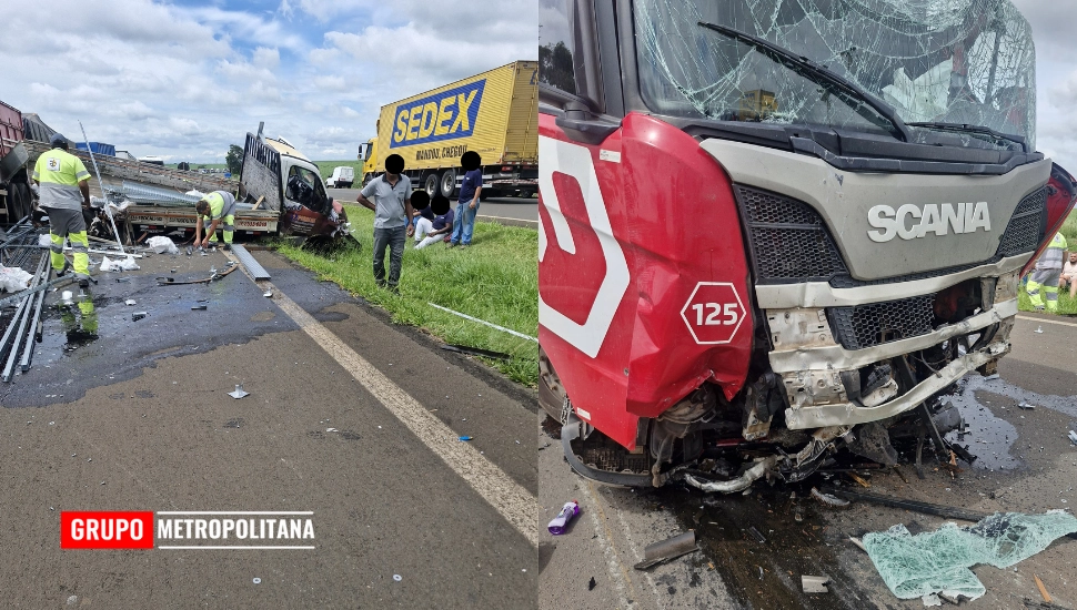 ACIDENTE COM QUATRO VEÍCULOS DE CARGA DEIXA FER...