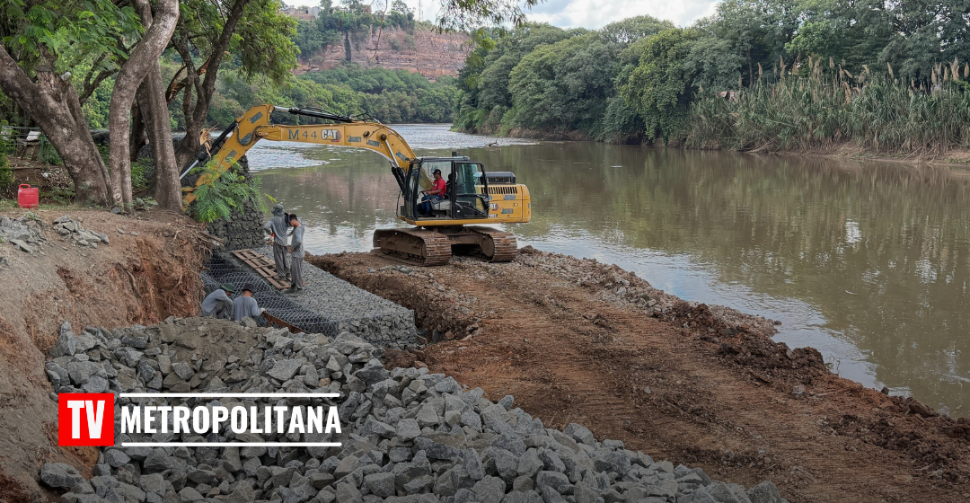 estão sendo preservadas. O reforço com gabião — estrutura de contenção composta