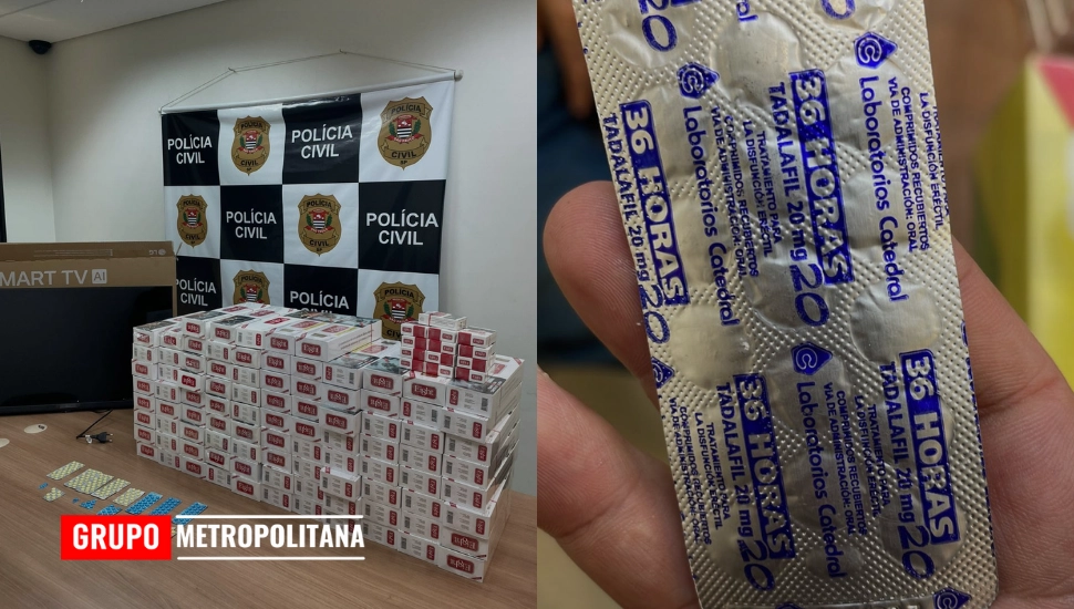As buscas se estenderam a uma barbearia de propriedade do mesmo investigado, onde os policiais apreenderam um frigobar que armazenava 97 comprimidos de “pramil” e 121 de “tadalafila”, ambos de fabricação paraguaia, sem registro na Agência Nacional de Vigilância Sanitária (Anvisa) e sem autorização para venda no Brasil.