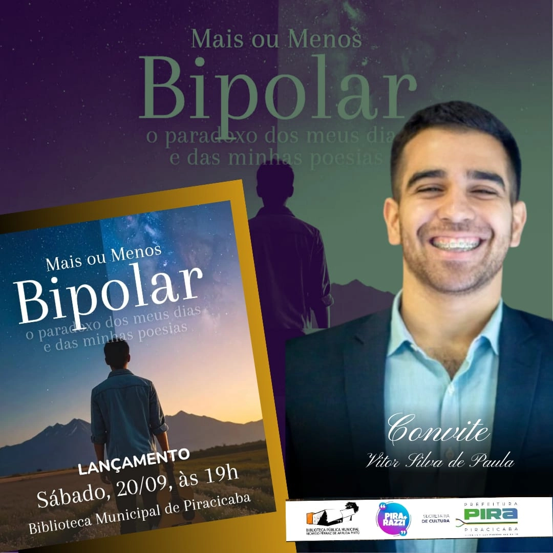 Piracicaba ganha um novo olhar sobre a saúde mental e a poesia com o lançamento do livro “Mais ou Menos Bipolar – o paradoxo dos meus dias e das minhas poesias”, assinado pelo escritor local Vítor Silva de Paula. O lançamento com noite de autógrafos acontece no dia 20 de setembro de 2025, às 19 horas, na Biblioteca Municipal de Piracicaba, em uma ocasião que promete emocionar e provocar reflexão entre os participantes.