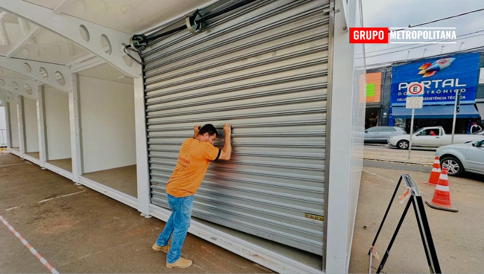As portas começaram a ser instaladas após definição do novo modelo de fechamento escolhido pelos permissionários. A estrutura original previa o uso de toldos, sem custo adicional, mas, após decisão conjunta, os comerciantes optaram pela instalação de portas metálicas, adquiridas por eles próprios. A colocação está sendo feita gratuitamente pela empresa responsável pelos módulos, sem impacto financeiro para o Município.