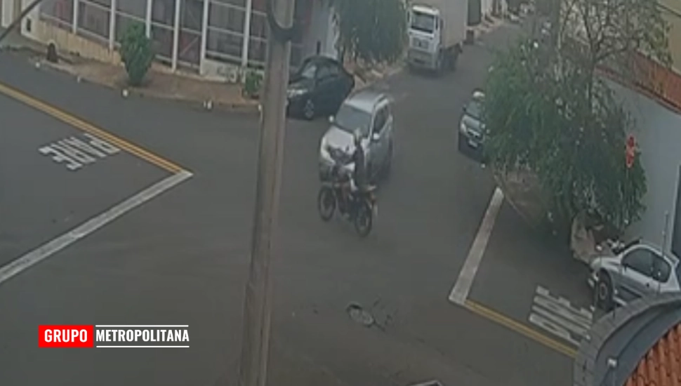 Um motociclista ficou ferido após se envolver em um acidente por volta das 18h de sábado (8), no bairro Caxambu, em Piracicaba (SP). Câmeras de segurança registraram o momento em que a motocicleta avançou a sinalização de “pare” na Rua Angelina Gerolamo Turim e foi atingida por um carro que seguia pela Rua Paulo Bruns.