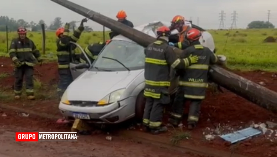 Com o impacto, o poste caiu sobre o veículo. Equipes da Polícia Militar e do Corpo de Bombeiros foram acionadas e precisaram cortar a lataria para retirar o motorista.