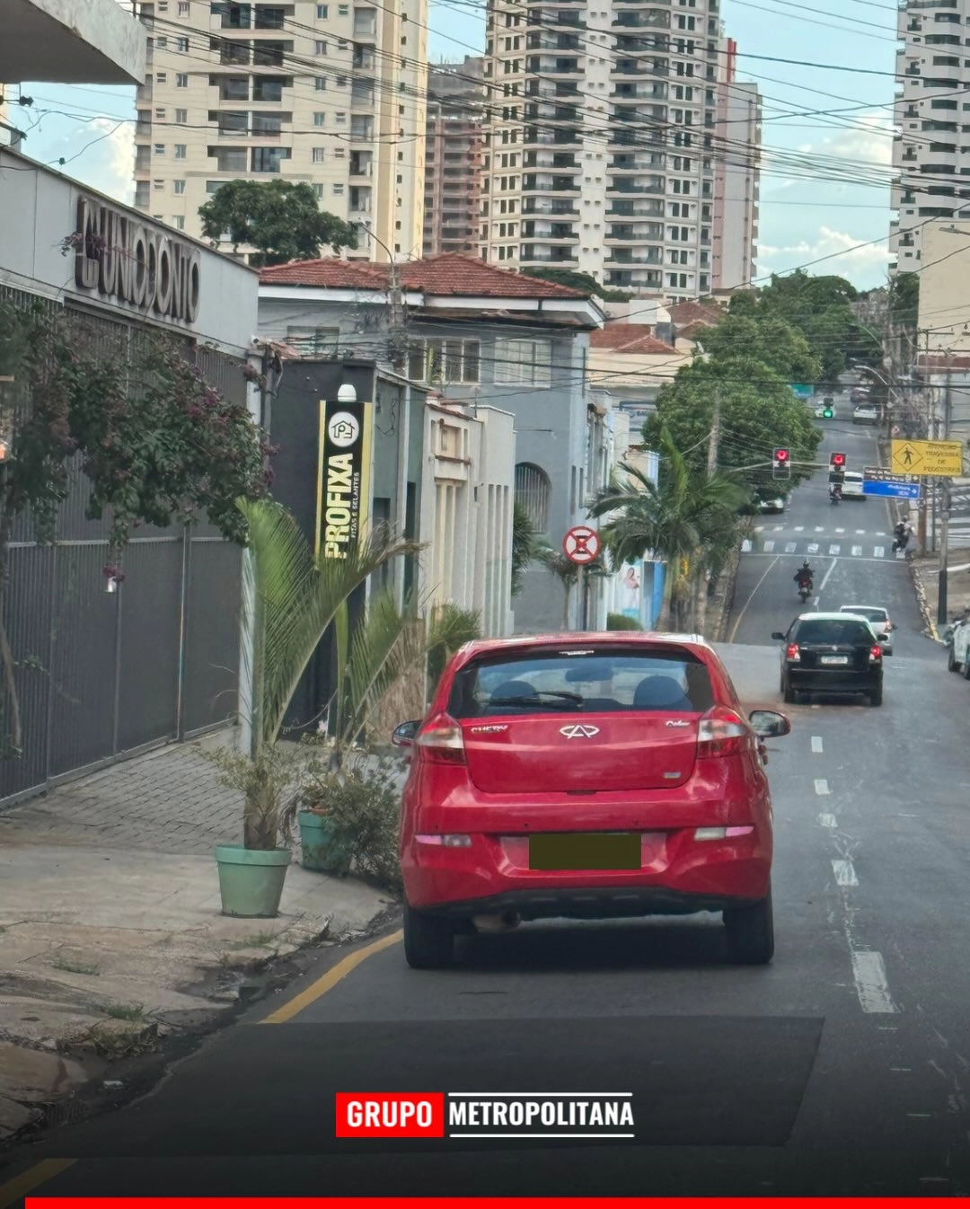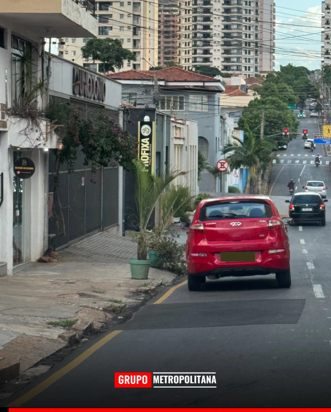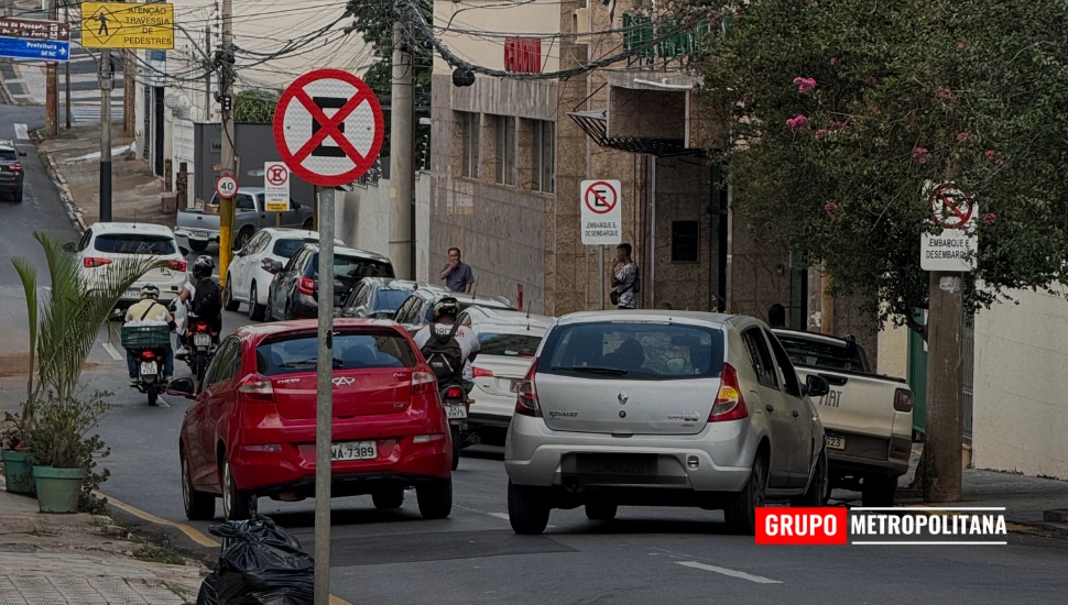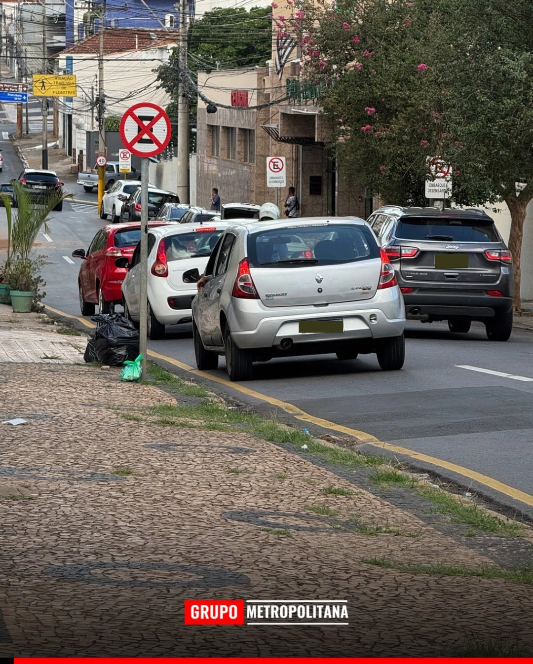 O automóvel ocupava uma vaga exatamente abaixo da sinalização que proíbe a parada e o estacionamento no trecho.