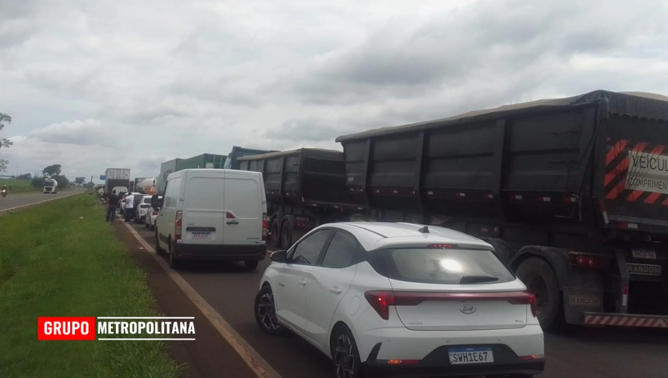 Por volta das 11h, o trecho chegou a ter interdição total, o que causou congestionamento na rodovia. No momento, as faixas direita e esquerda permanecem interditadas, com o tráfego fluindo pelo acostamento.