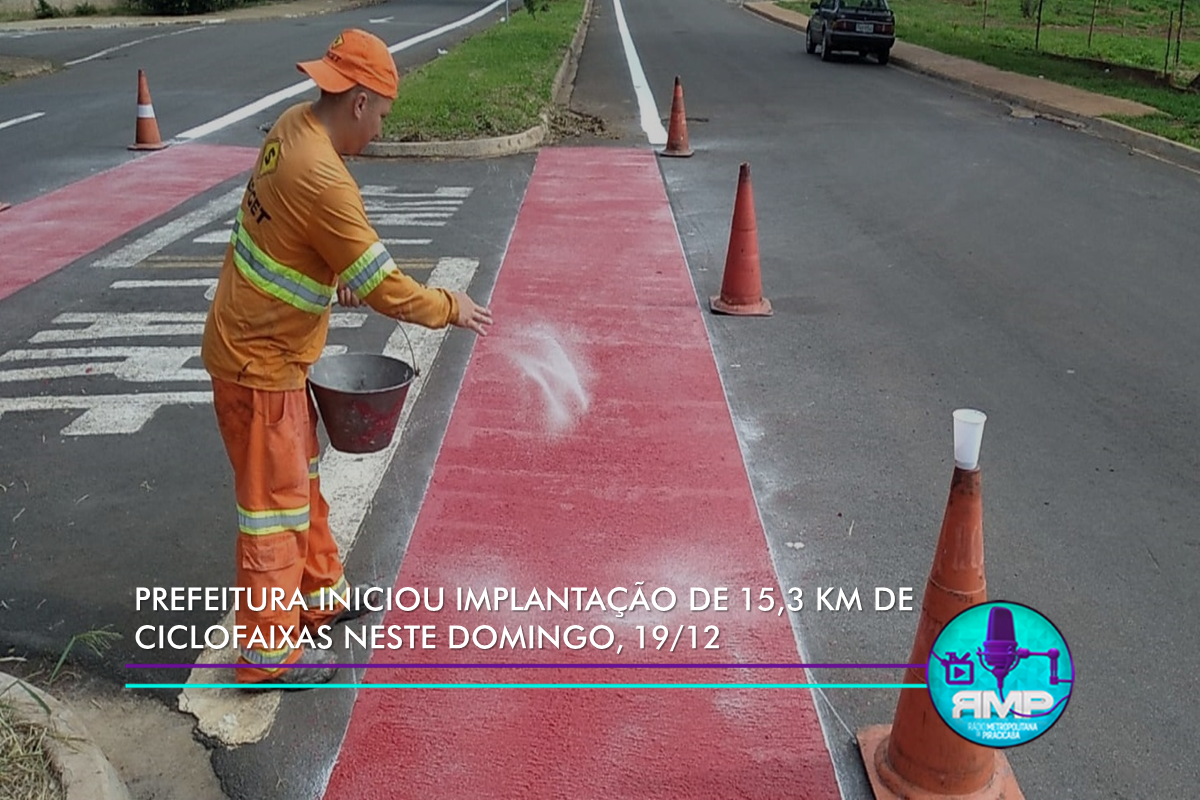 implantação de 15,3 Km de ciclofaixas no município, que vão contemplar, nesta