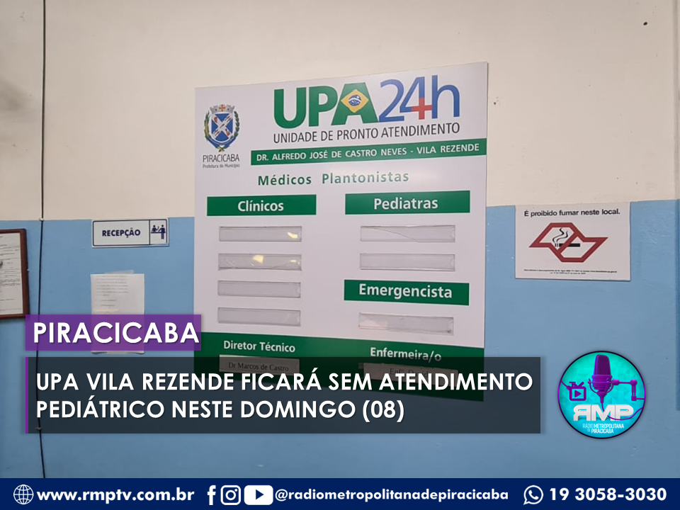 atendimento da pediatria na UPA Rezende estará suspenso das 7h deste domingo,