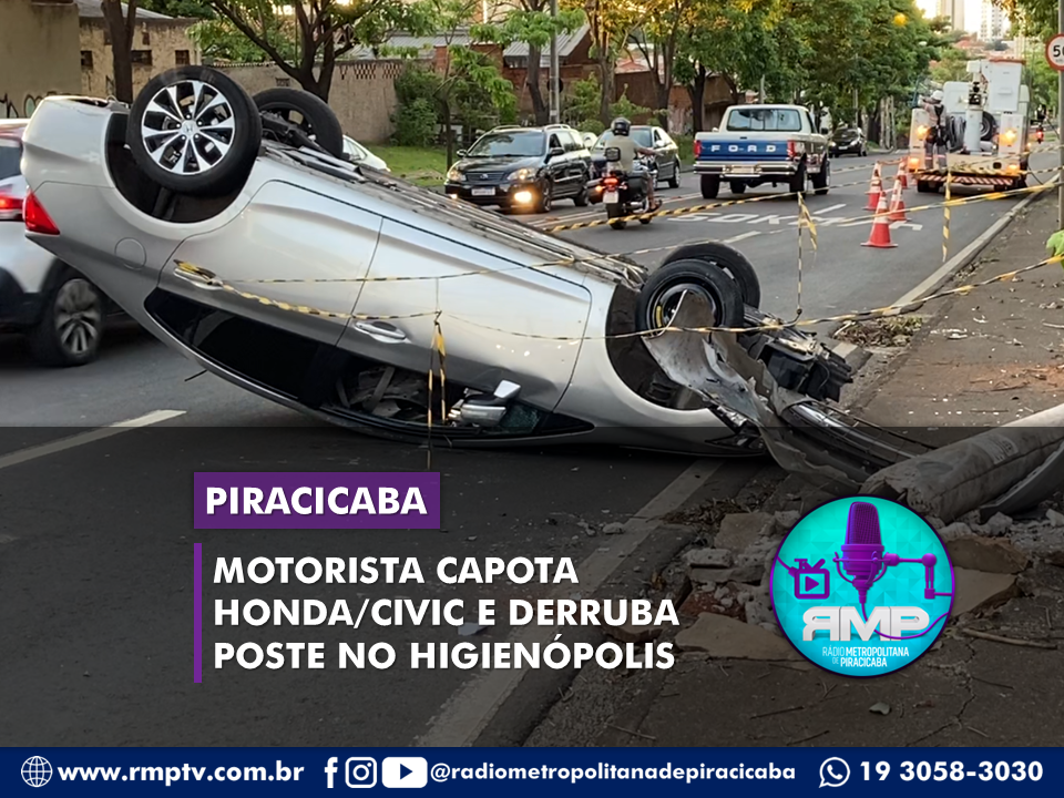 capotar um veículo Honda Civic e derrubar um poste na tarde deste sábado (4),