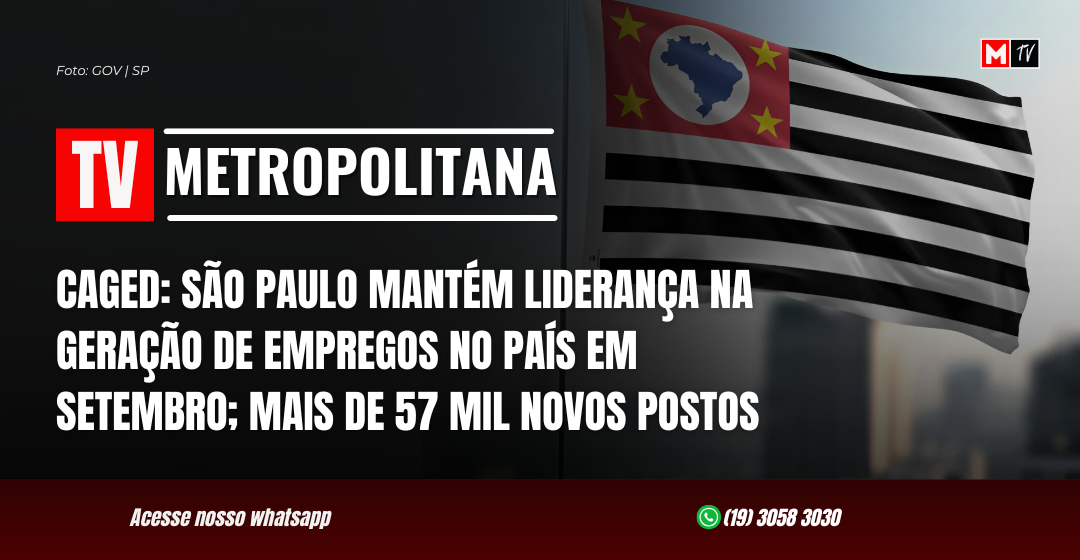 Federação que teve o maior saldo de empregos no país em setembro: 57.067 novos