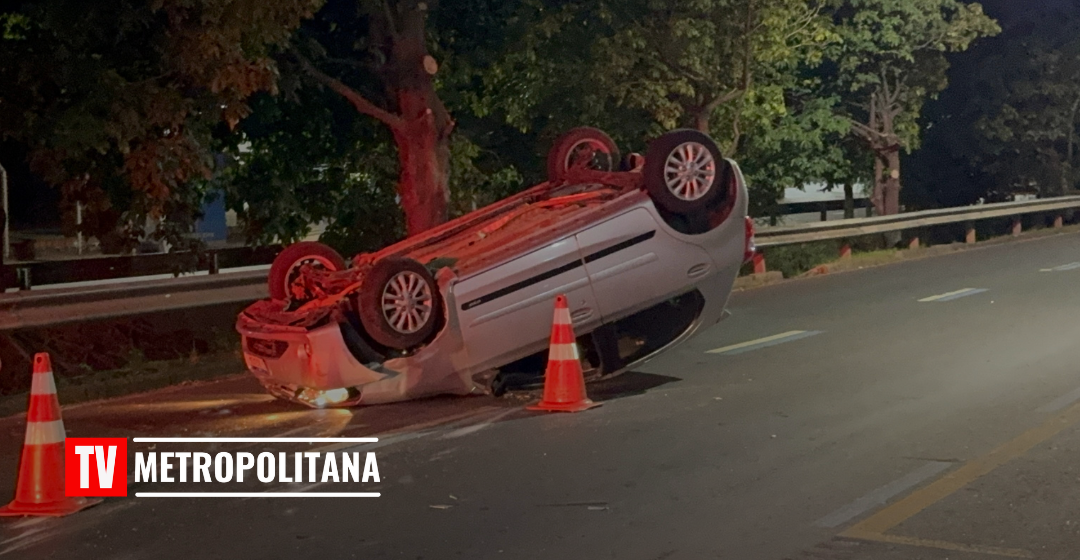 impacto, o motorista do carro que capotou sofreu apenas ferimentos leves. Não