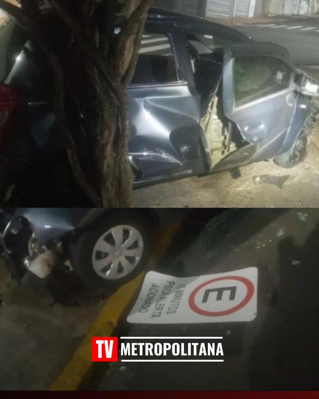 A mãe do dono do carro foi localizada e ficou responsável pelo veículo, que teve a frente bastante danificada.