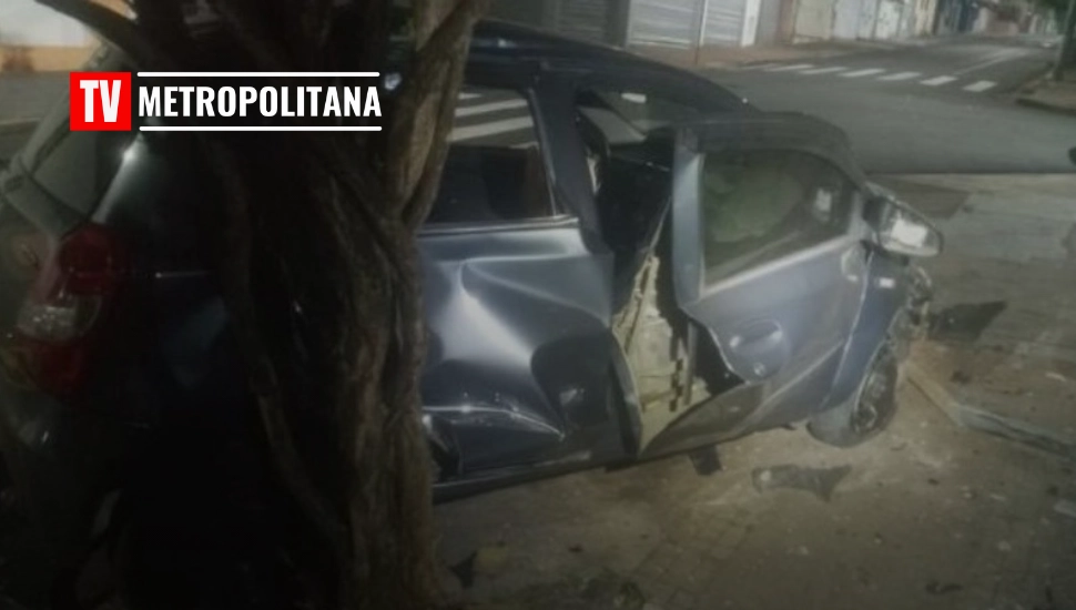 Um carro bateu contra uma placa de trânsito e a fachada de um comércio na manhã deste domingo (1º), no Centro de Piracicaba (SP). Após o acidente, o motorista fugiu do local antes da chegada da polícia e ainda não foi identificado.