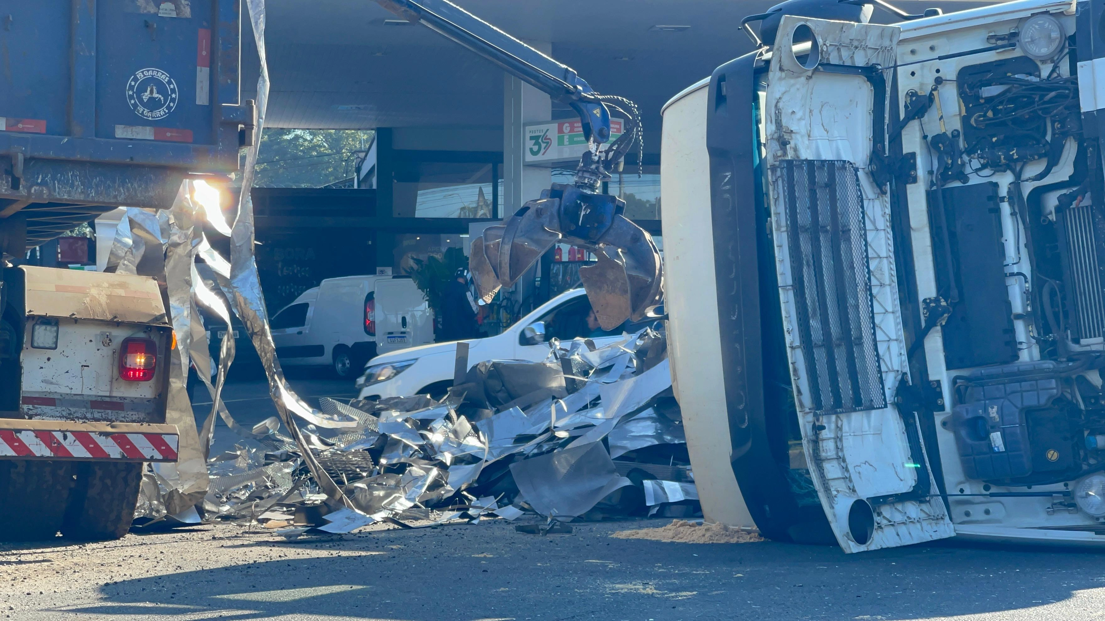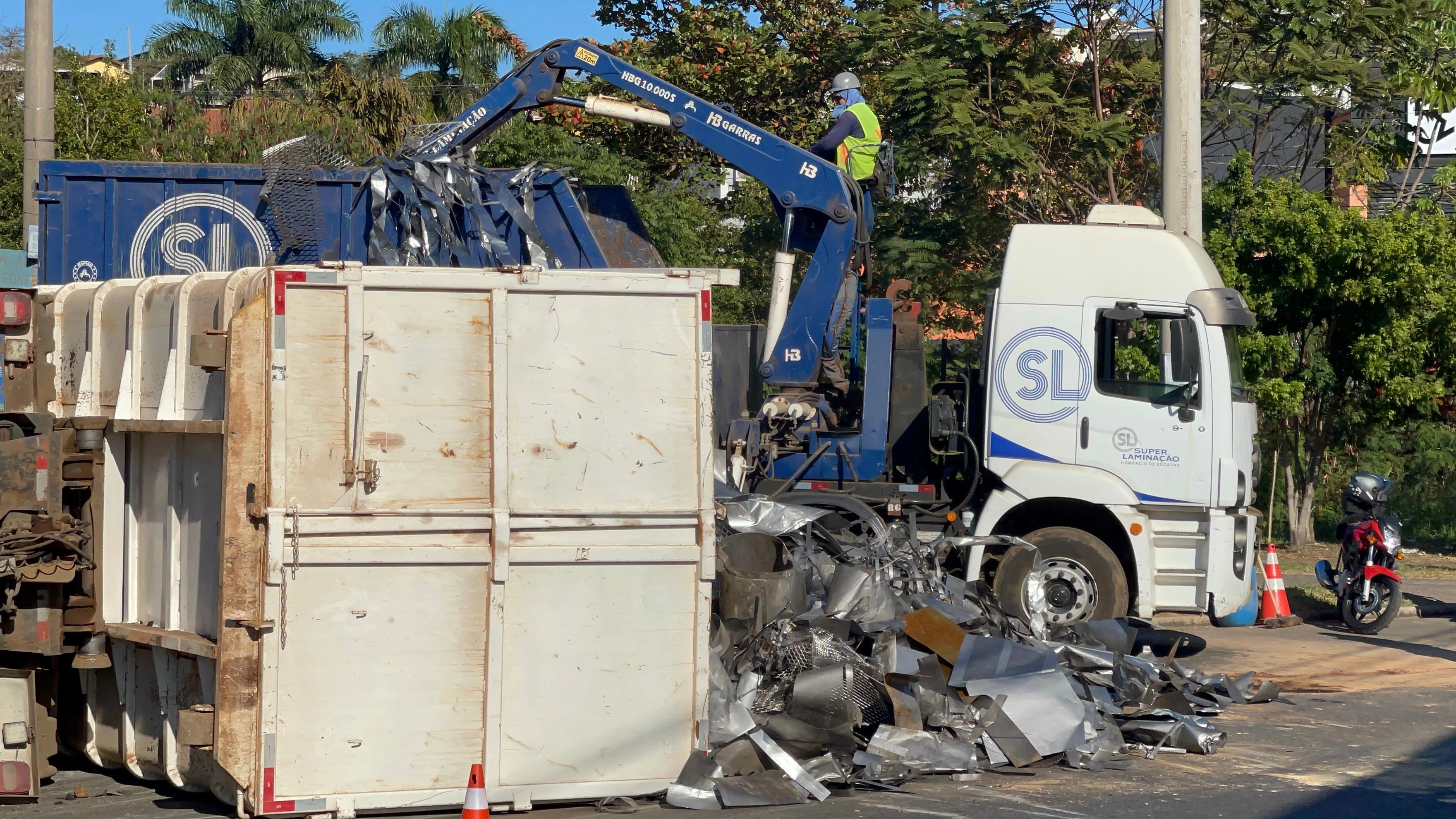 Um segundo caminhão foi chamado para recolher o material que ficou espalhado na via.