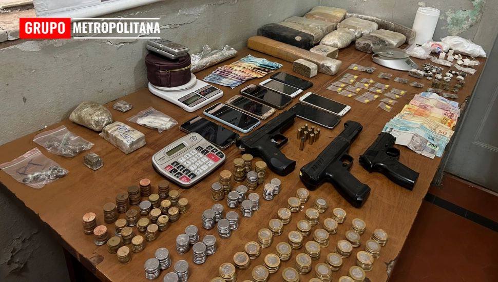 Segundo a corporação, a ação começou após denúncia de tráfico de drogas na Rua Emílio Baltieri. Durante a abordagem, os policiais flagraram um suspeito tentando se desfazer de uma sacola com entorpecentes. Dentro do imóvel ligado a ele, foram encontradas porções de drogas, dinheiro em espécie, munições, simulacros de arma de fogo, balanças de precisão e materiais usados para preparo e embalagem.
