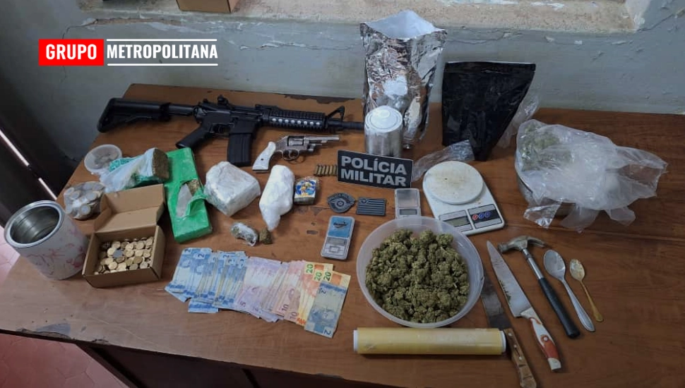 Polícia Militar apreendeu mais de 2 kg de maconha, 647 g de cocaína, um revólver calibre .38, munições e simulacro de fuzil no Jardim Holiday