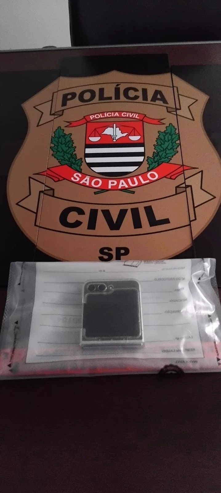 O aparelho será analisado pela perícia. O inquérito investiga crimes como perseguição, violência psicológica contra a mulher e crimes contra a honra cometidos pela internet.