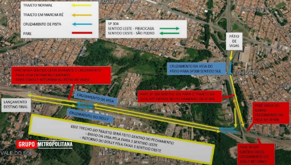 Dando sequência às obras de construção de dois novos viadutos no trecho urbano da SP 304 - Rodovia Luiz de Queiroz, em Piracicaba, a Eixo SP Concessionária de Rodovias realiza, nesta quarta-feira (15), o lançamento de cinco vigas no dispositivo do km 171, próximo ao Parque Piracicaba (Balbo). A operação ocorrerá das 6h às 17h e, durante o transporte de cada uma das vigas até o canteiro de obras, serão necessárias interdições pontuais e rápidas, com duração máxima de cinco minutos cada. Já a instalação das vigas no dispositivo em construção não causará interferências no tráfego.