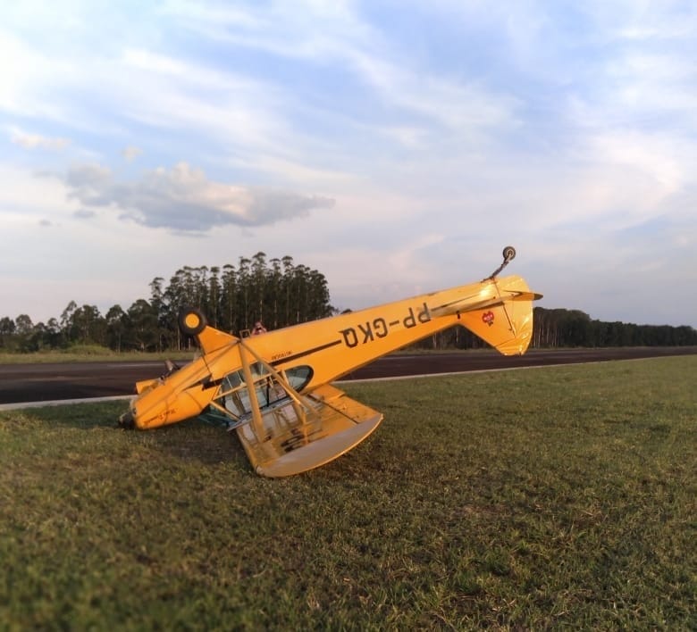 trem de pouso danificados, em uma primeira verificação. O monomotor é um Piper J3 fabricado em 1950, de matrícula PP-GKQ, pertencente ao Aeroclube de Rio Claro (SP),