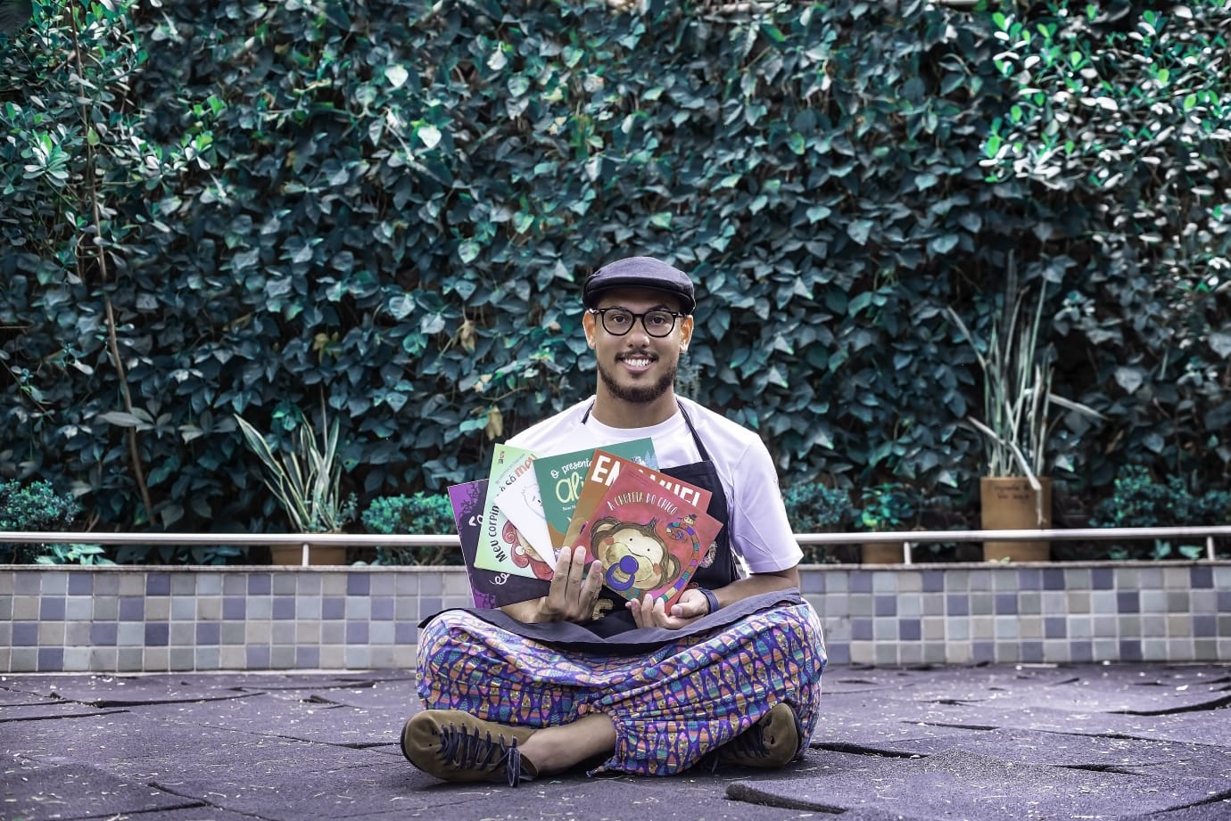 atividades de contação de histórias, o piracicabano Evair Sousa realiza