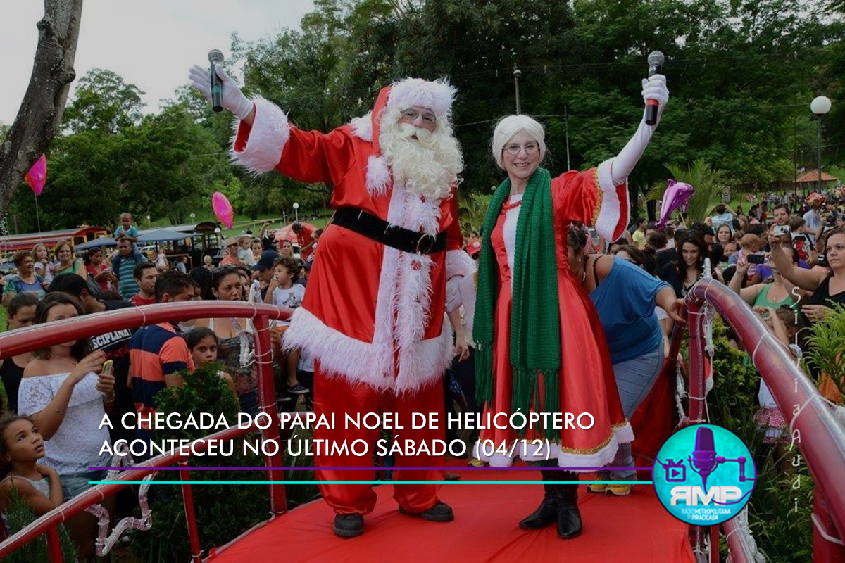 A chegada do Papai Noel de helicóptero neste sábado, 04/12, às 17h, no campo de Futebol União Porto, na Rua do Porto, foi um dos atrativos da 13ª edição do projeto Luz & Arte, que segue até 23/12. O evento, realizado pela Prefeitura e Acipi (Associação Comercial e Industrial de Piracicaba), tem como objetivos oferecer atrações culturais gratuitas à população, incentivar o turismo no município e fomentar as vendas de Natal do comércio local.
