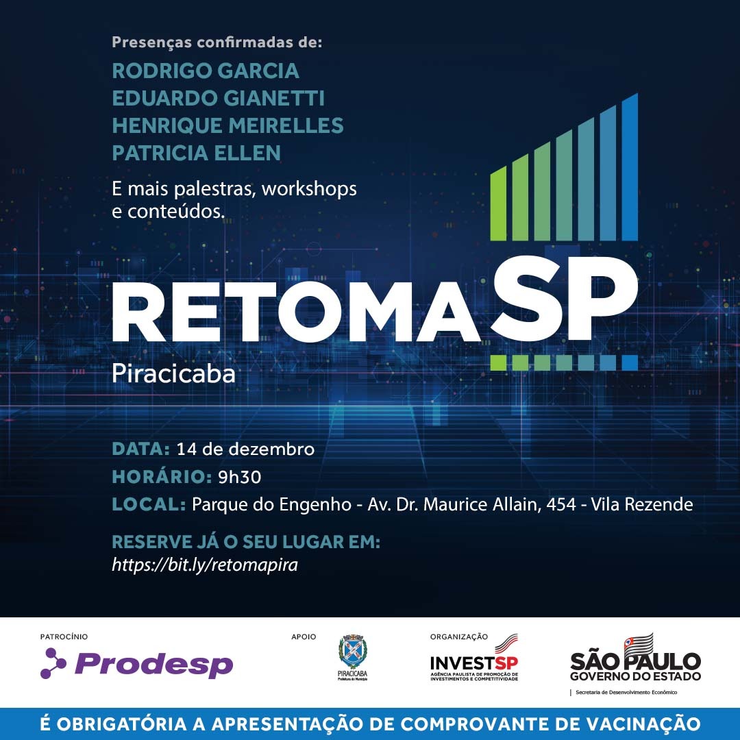 Piracicaba recebe, na próxima terça-feira, 14/12, o RetomaSP, evento promovido