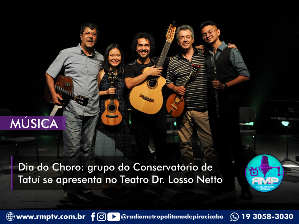 SERVIÇO - Dia Estadual do Choro – Grupo de Choro do Conservatório de Tatuí. Terça, 28/06, às 19h30. Entrada gratuita. Para quem quiser e puder, também pede-se a doação de um 1 litro de leite ou uma lata de leite em pó que serão doados ao Fundo Social de Solidariedade (Fussp). Retirada dos ingressos: 1 hora antes do espetáculo. Classificação: Livre. Local: Teatro Municipal Dr. Losso Netto -.Av. Independência, 277 - Alto, Piracicaba – SP.