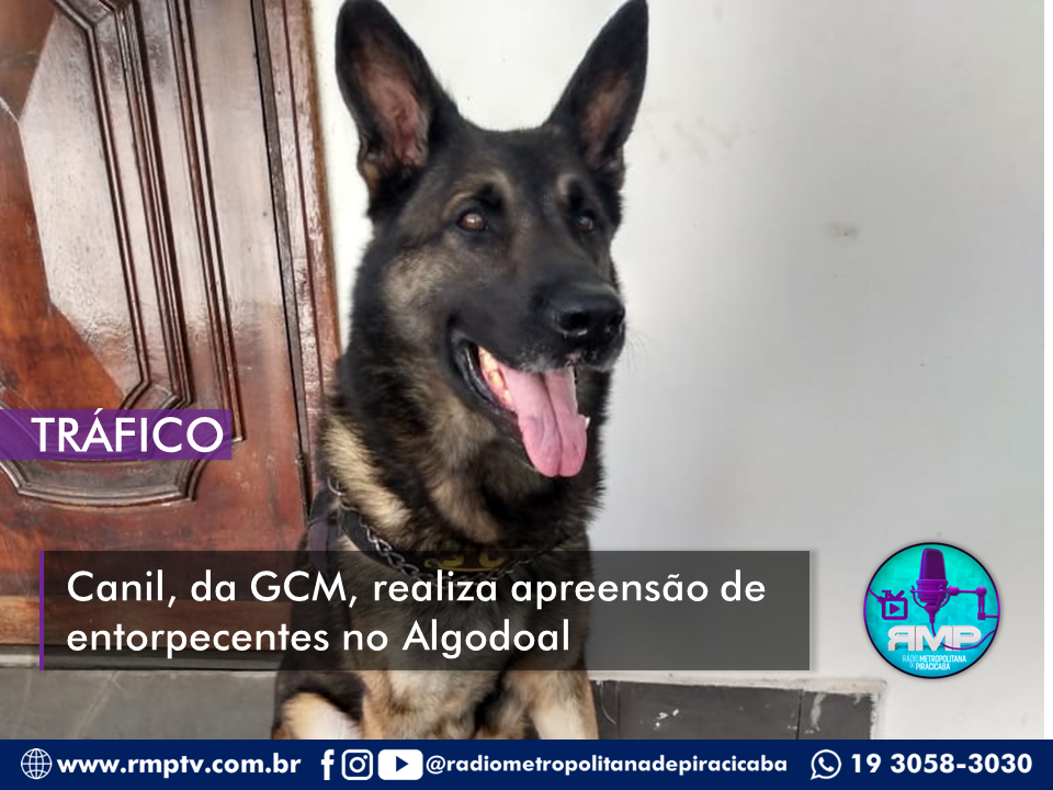 Cão Iron localizou drogas em arbusto próximo a escola; ação foi motivada por denúncias que relatam tráfico nas proximidades da unidade escolar.