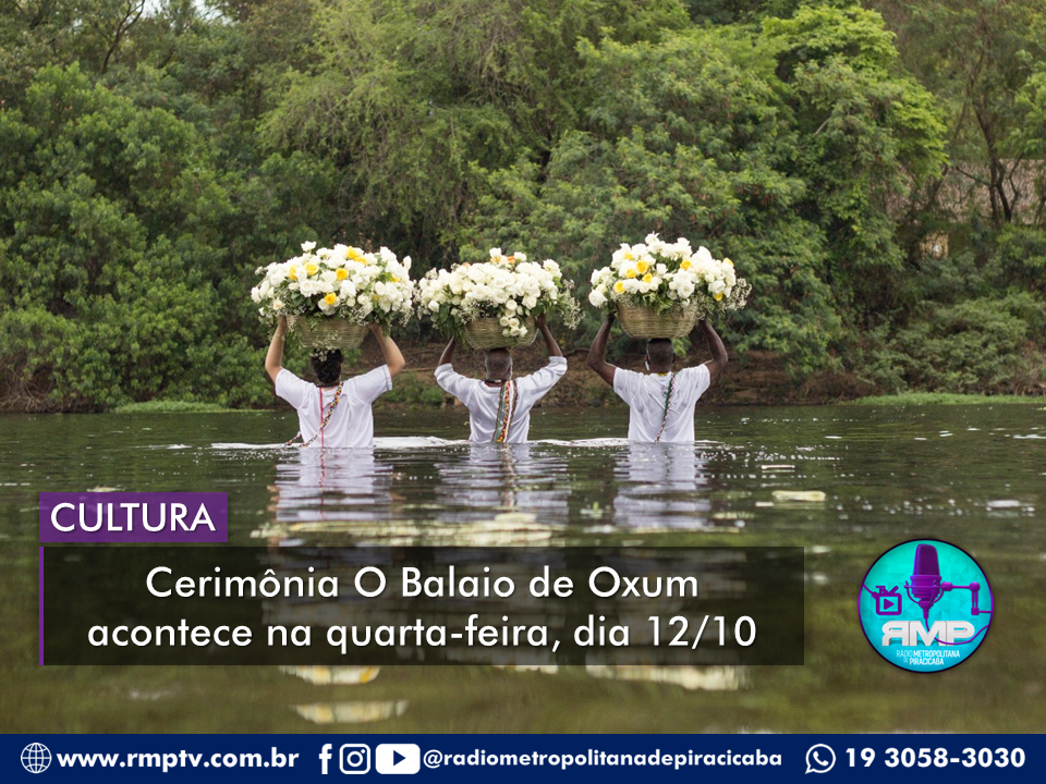 SERVIÇO - 24ª entrega do presente para Oxum – o Balaio de Oxum. Pelo Templo de Umbanda Integrativa Caboclo Pena Branca. Na quarta-feira, 12/10, às 9h, em frente à Casa do Povoador, localizada na avenida Beira Rio, s/n, Centro. Gratuito.