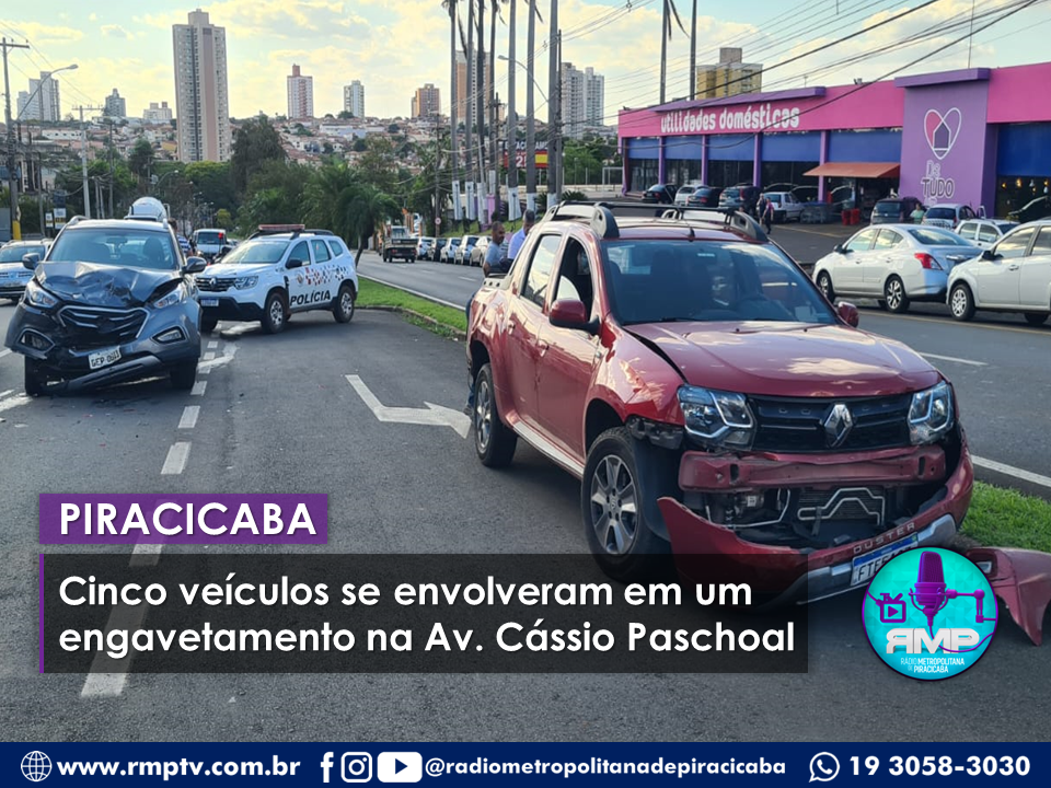 Na tarde desta sexta-feira (4), um engavetamento entre cinco veículos foi registrado em Piracicaba (SP). Ninguém ficou ferido, o trânsito ficou carregado e com lentidão.