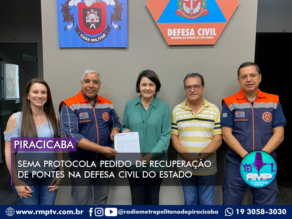 A Prefeitura Municipal de Piracicaba, por meio da Sema (Secretaria Municipal de Agricultura e Abastecimento), protocolou na última quinta-feira, 19/01, ofício com a indicação de reconstrução de cinco pontes de madeira da zona rural do município na Secretaria da Casa Militar e Defesa Civil do Estado de São Paulo, localizada no Palácio dos Bandeirantes, em São Paulo.