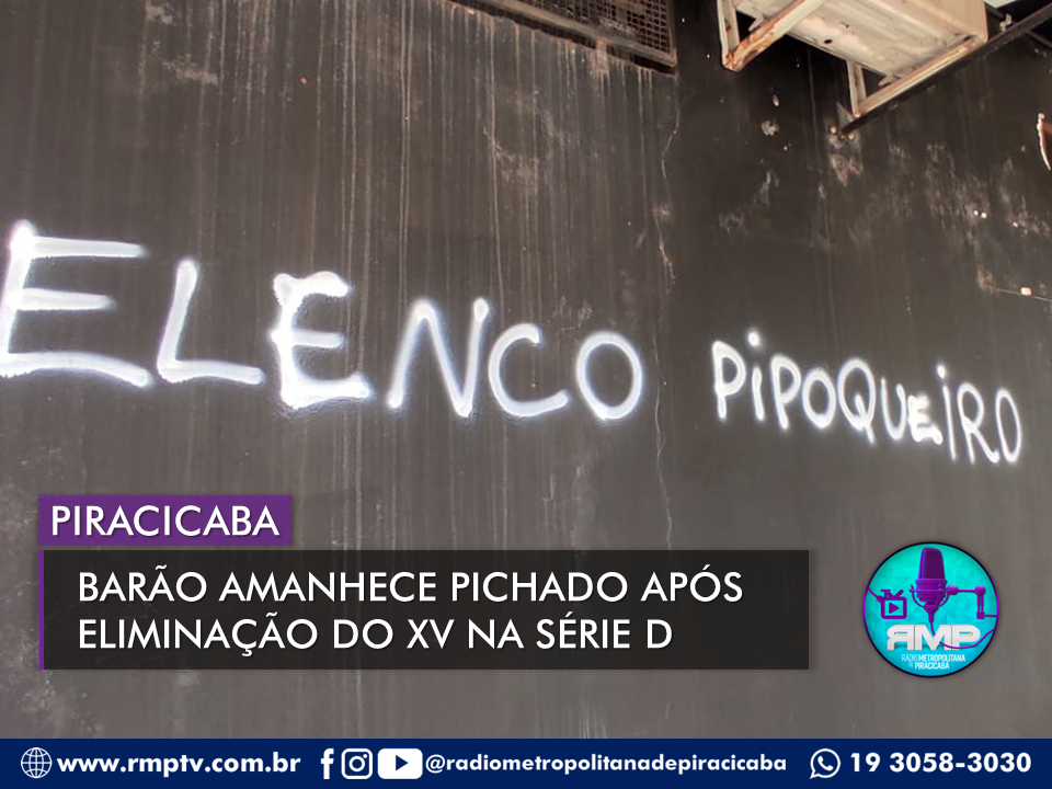 O estádio Barão da Serra Negra, casa do XV de Piracicaba, amanheceu com pichações nos muros após o time ser eliminado da Série D do Brasileirão. O time perdeu para o Cascavel por 3 a 2 fora de casa na última rodada da primeira fase, no último sábado (22), e se despediu da competição nacional.