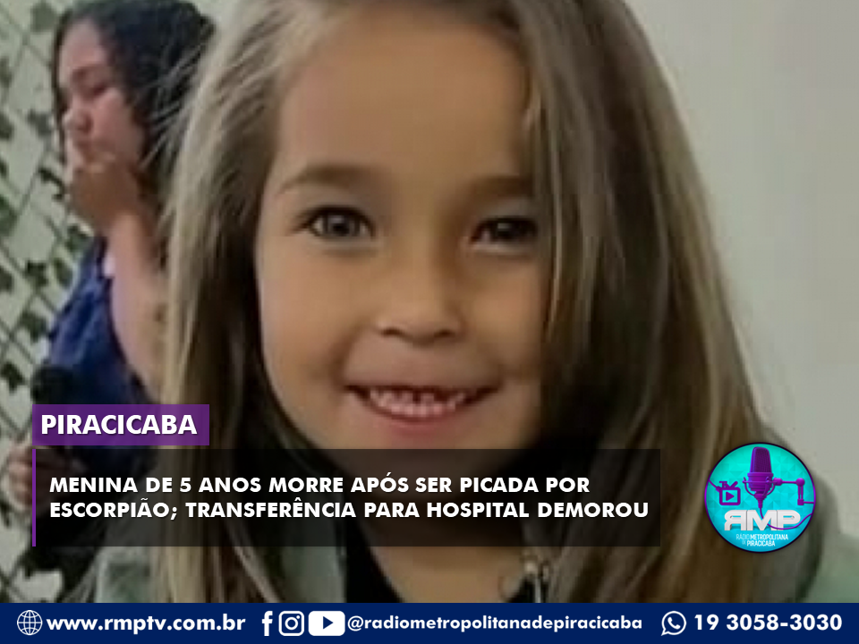 Menina de 5 anos faleceu após ser picada por escorpião; transferência da