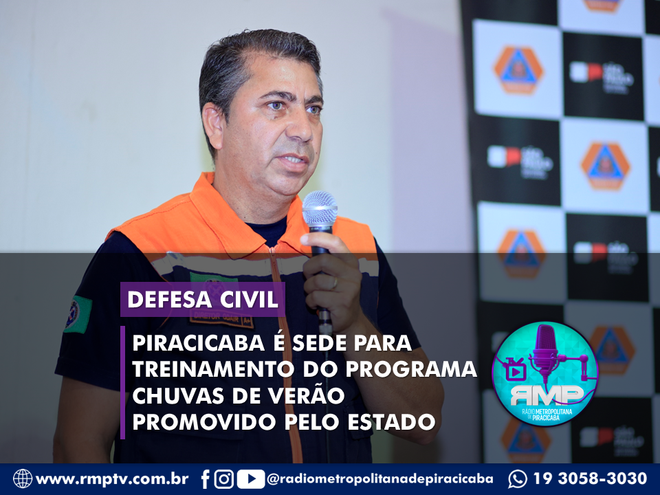 Nos dias 09 e 10/11, Piracicaba é sede da 5ª edição do treinamento do Programa Estadual Chuvas de Verão 2023/2024. Realizado no Barracão 14 do Engenho Central, a atividade está recebendo mais de 140 pessoas de 41 cidades da macrorregião de Campinas; além de Piracicaba, outras sete regiões também estão recebendo o treinamento.