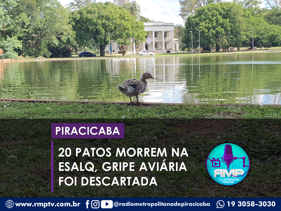 Vinte patos morreram entre o fim do ano passado e o começo deste ano no lago que fica em frente ao pavilhão de Engenharia da Esalq (Escola Superior de Agricultura Luiz de Queiroz). Na quarta-feira (03), a Prefeitura emitiu um comunicado dizendo que as mortes ocorreram nos últimos dez dias.