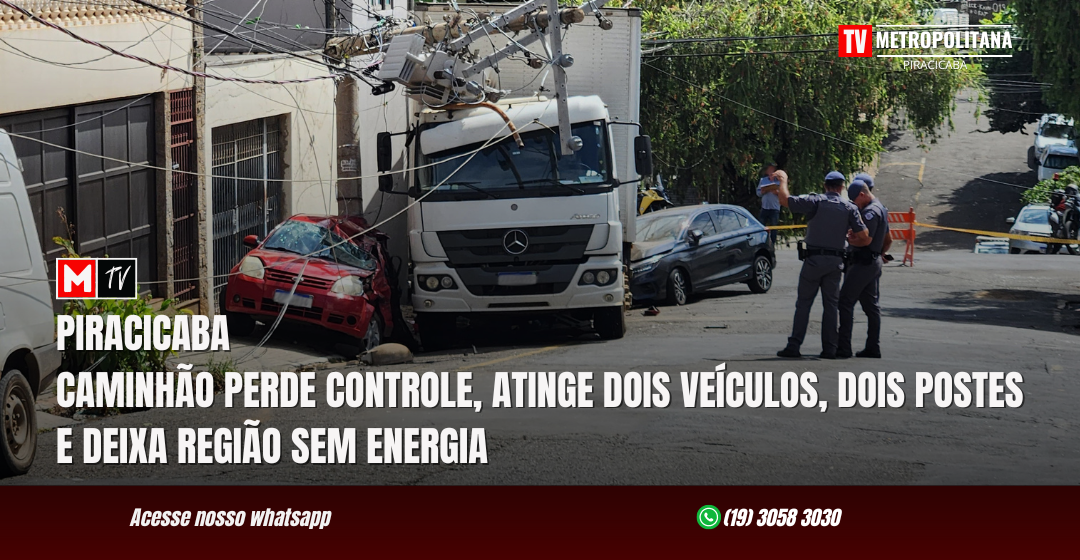 carros e não se feriram. A colisão do caminhão com um poste fez com que a