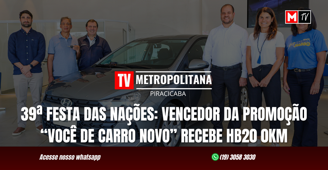 Em parceria com a Prefeitura de Piracicaba, a Hyundai realizou hoje, 20/08, a entrega do HB20 0km ao vencedor da promoção Você de Carro Novo, da 39ª Festa das Nações, realizada pela Fenapi (Associação Cultural Festa das Nações). O metalúrgico João de Souza Lima Sobrinho, morador de Piracicaba (SP), adquiriu o cupom premiado com a Associação de Pais e Amigos dos Alunos da Escola de Educação Especial Passo a Passo, responsável pelo restaurante da Áustria, com número 17.285 da Loteria Federal, sorteado no dia 14/08/2024 e apurado em 15/08/2024. A entrega aconteceu na sede da concessionária Hyundai HMB Caminho, na avenida Limeira.