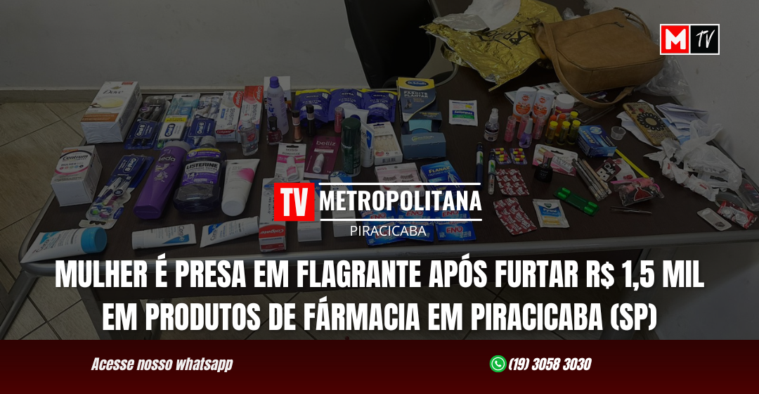 Uma mulher, de 50 anos, foi presa em flagrante pela Polícia Militar na tarde desta quarta-feira (4), após furtar R$ 1,5 mil em produtos de uma farmácia na Avenida Independência, em Piracicaba (SP).