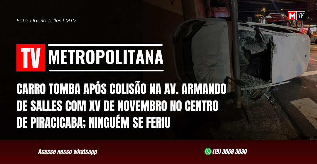 Um acidente de trânsito ocorreu na noite desta terça-feira (5), na Avenida Armando de Salles em Piracicaba, quando um Ford/ Ká colidiu com um Volkswagen/ Fox, fazendo com que o Fox tombasse. Não houve vítimas e ninguém precisou de atendimento médico.