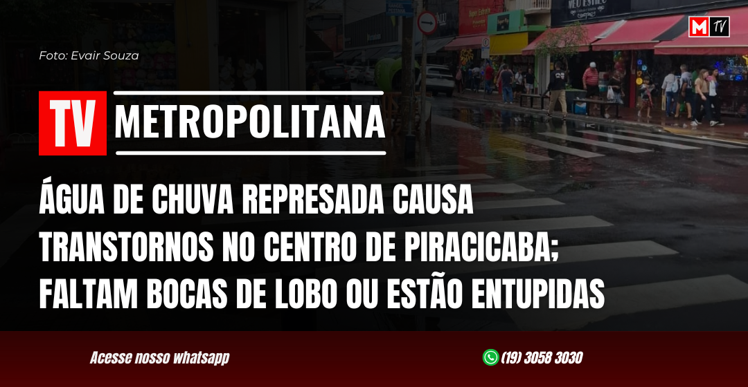Na manhã desta sexta-feira (8), a equipe de jornalismo da TV Metropolitana atendeu ao apelo de comerciantes e usuários da região central de Piracicaba, que relataram problemas causados pela água de chuva represada na interseção das ruas Rangel Pestana com a Governador Pedro de Toledo.